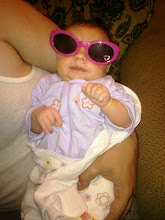 It's like how I'm trying to teach her please and thank you. When she drops something and wants it back, I tell her to say "please". Of course she doesn't know how to say it, so she doesn't. So, I say it and then I hand her the object she wants and proceed to say "thank you". Since I'm basically having a conversation with myself, I doubt she understands that she is suppose to be saying please and thank you to me. I told Nik we need to start saying it to each other around her, but we haven't been very good about getting into the habit yet.
